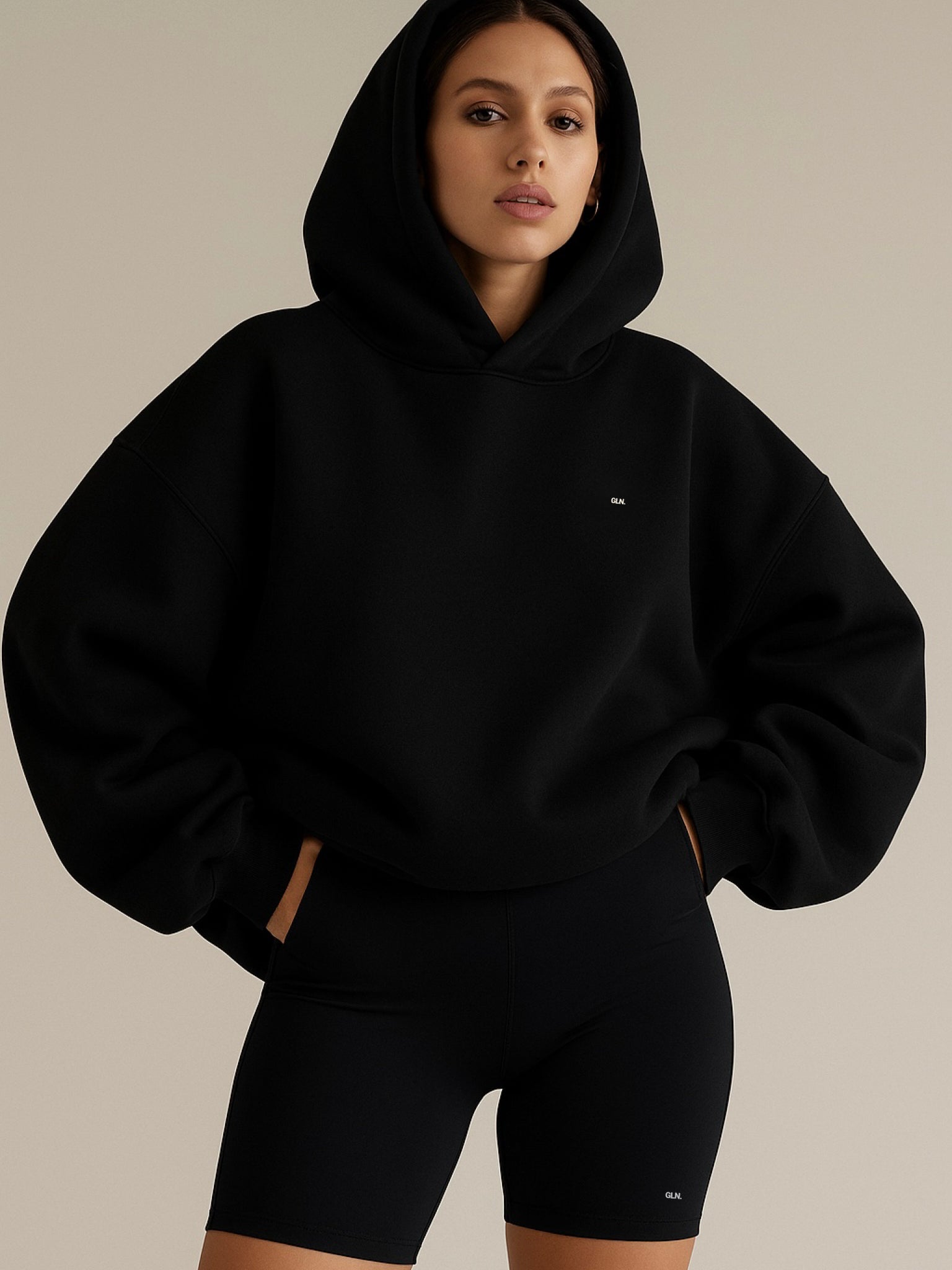 نقدم لكم جوهر الأناقة العصرية: هودي جالين الأسود العصري، بتصميمه الواسع الذي يمنحكِ إطلالة أنيقة دون عناء. يتميز هذا الهودي بشعار أصفر مربع جريء، ويجمع بين الراحة والأناقة، مما يجعله قطعة مميزة في أي خزانة ملابس. ارتقِ بأسلوبك في أزياء الشارع مع تصميم جالين المميز، ليُعيد تعريف الأناقة الكاجوال مع كل ارتداء.