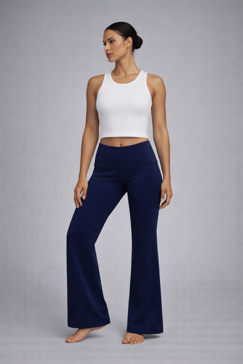 This navy blue fired pants is designed as an essential layer for everyday movement. Its clean silhouette and structured fit create a balanced shape, both technical and refined. Crafted from a smooth, stretch fabric, it offers comfort and support without restricting motion. The high-rise provides a sharp, modern line.